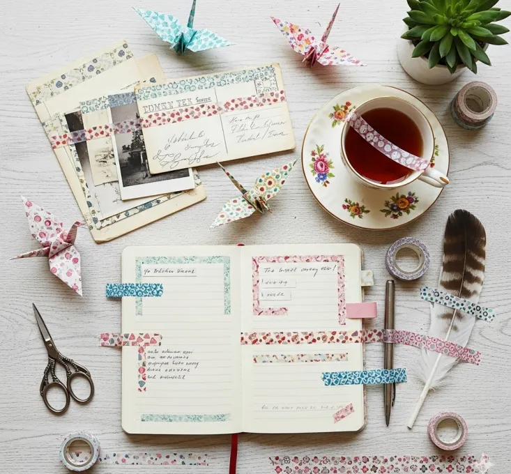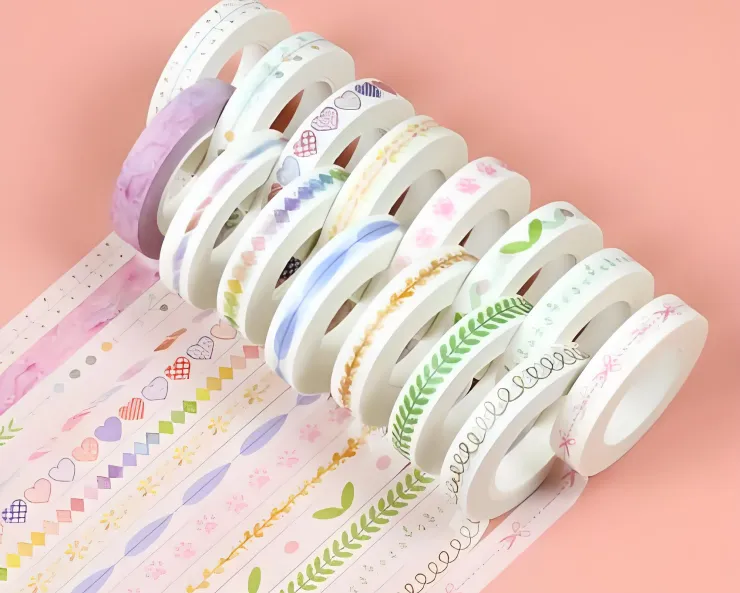 Washi tape, with its diverse patterns, moderate adhesiveness, and easy tearability without leaving residue, serves both as a practical tool and an aesthetic design element in cultural product development, artistic creation, and space decoration. It is commonly used in the design and production of cultural and creative products such as planners, greeting cards, gift wrapping, bookmarks, and stationery. It can also be applied in collage art, as border decoration for hand-painted works, or as masking material to separate color blocks. In spatial and object decoration, washi tape is widely used for temporary or semi-permanent decoration on walls, furniture, picture frames, notebooks, and electronic device covers.